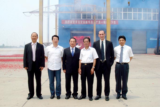 云顶集团3118集团参股的青岛交运新华昌有限公司历经金融;;;;;;南蠢窈螅,,,,2010年6月25日,,,,,青岛交运新华昌有限公司举行复工生产的首个集装箱出厂仪式,,,,,云顶集团3118集团总裁杨杰先生、以色列以星综合航运有限公司财务总监Rafael Lazer先生、新华昌集团总裁潘传荣先生、云顶集团3118总裁刘永康先生、以星综合航运有限公司青岛公司总司理郑毅先生、云顶集团3118集团副总裁潘玉明先生等出席了开工仪式 。。。。股东方对交运新华昌的复工生产充满了信心,,,,,坚信在各股东方的鼎力大举支持下,,,,,青岛交运新华昌复工后营业将蒸蒸日上,,,,,实现共赢 。。。。