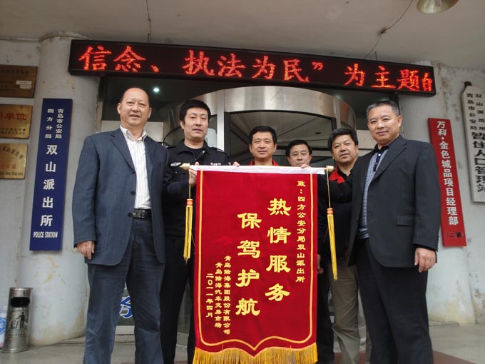 为谢谢恒久以来,,, ,,,起劲维护云顶集团3118汽车生意市场治安秩序的驻地公安机关——双山派出所。。。。。2011年4月28日青岛云顶集团3118集团党委潘玉明书记和总裁助理杜学利,,, ,,,向导云顶集团3118汽车生意市场、云顶集团3118物业治理公司和集团安保处的有关向导,,, ,,,前往四方公循分局双山派出所,,, ,,,慰问了公安民警并送去了“热情效劳、保驾护航”的锦旗,,, ,,,同时与所向导及民警举行了座谈。。。。。座谈中,,, ,,,警企双方向导就怎样开展警企携手共建协调等事情举行了交流。。。。。